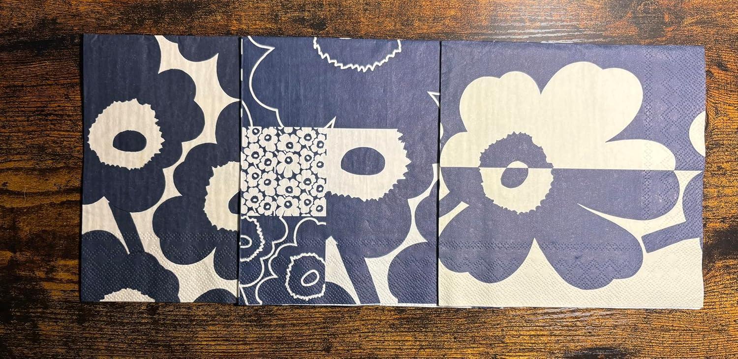 IHR Ideal Home Range Party Napkins Marimekko Disposable 3-Ply Paper Lunch Napkin Pack, 6.5″ x 6.5″, Orkanen Linen/Black, 20-Count(Nasia White/Blue)