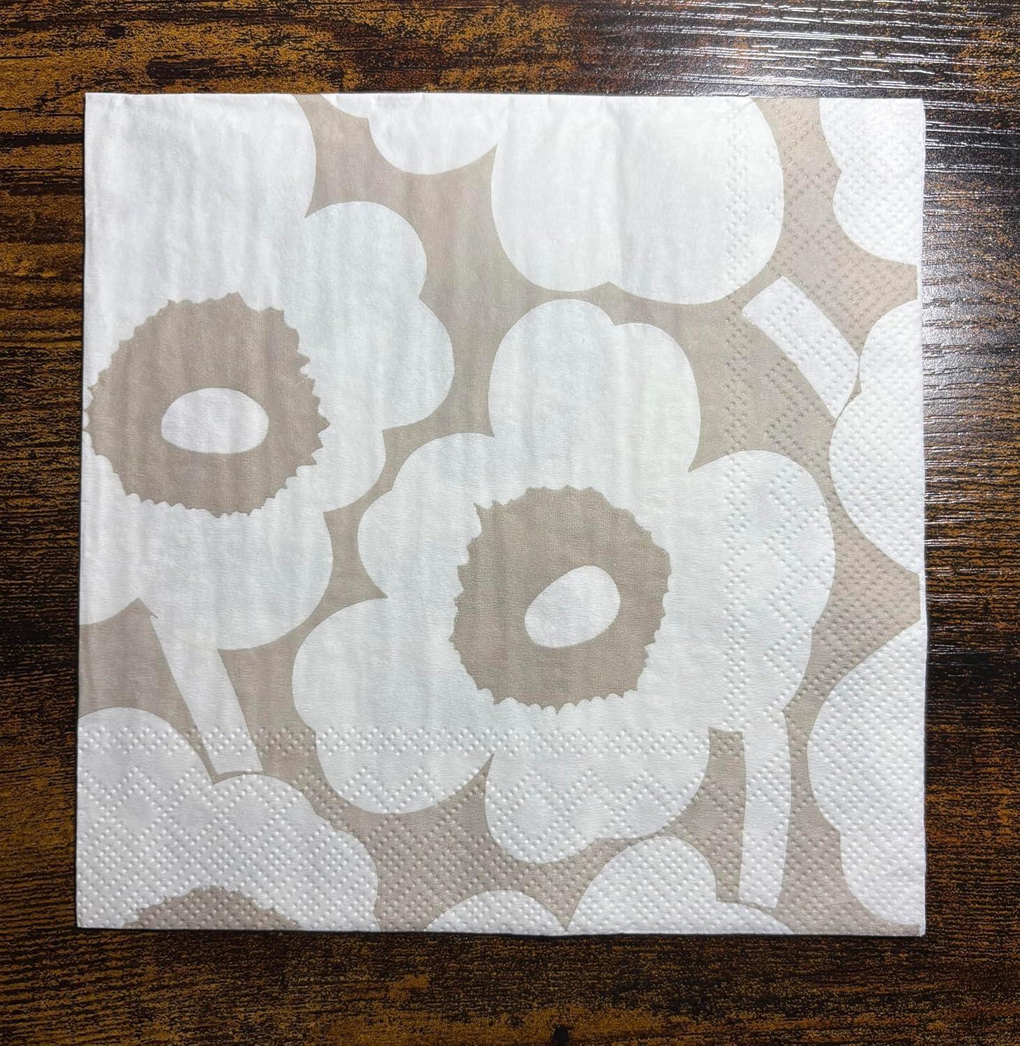 IHR Ideal Home Range Party Napkins Marimekko Disposable 3-Ply Paper Lunch Napkin Pack, 6.5″ x 6.5″, Isot Kivet Nakki Light Brown, 20-Count