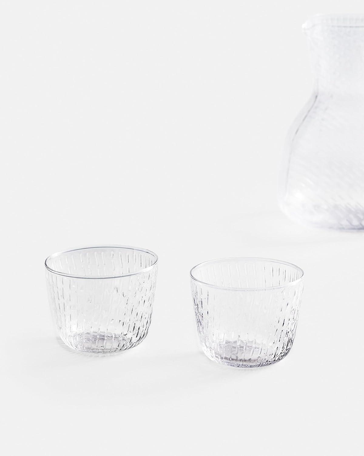 • MARIMEKKO Sukat Makkaralla Glass Pitcher — Refine Your Kitchen Décor with Our Iconic Clear Glassware — Stylish & Mouth-Blown Pitcher with Spout (1 Liter)(Tumblers (2-Piece))