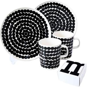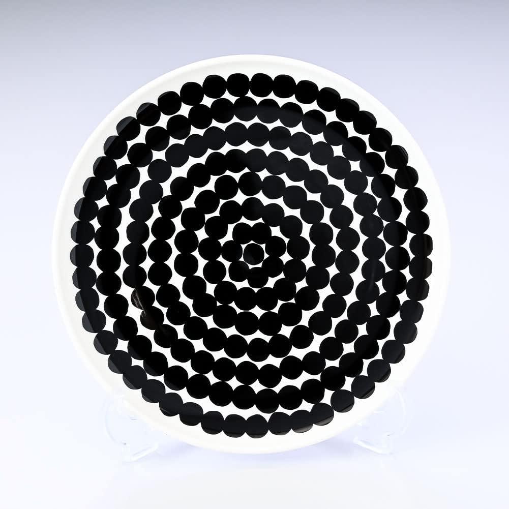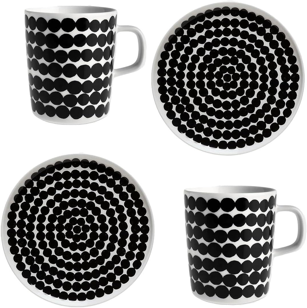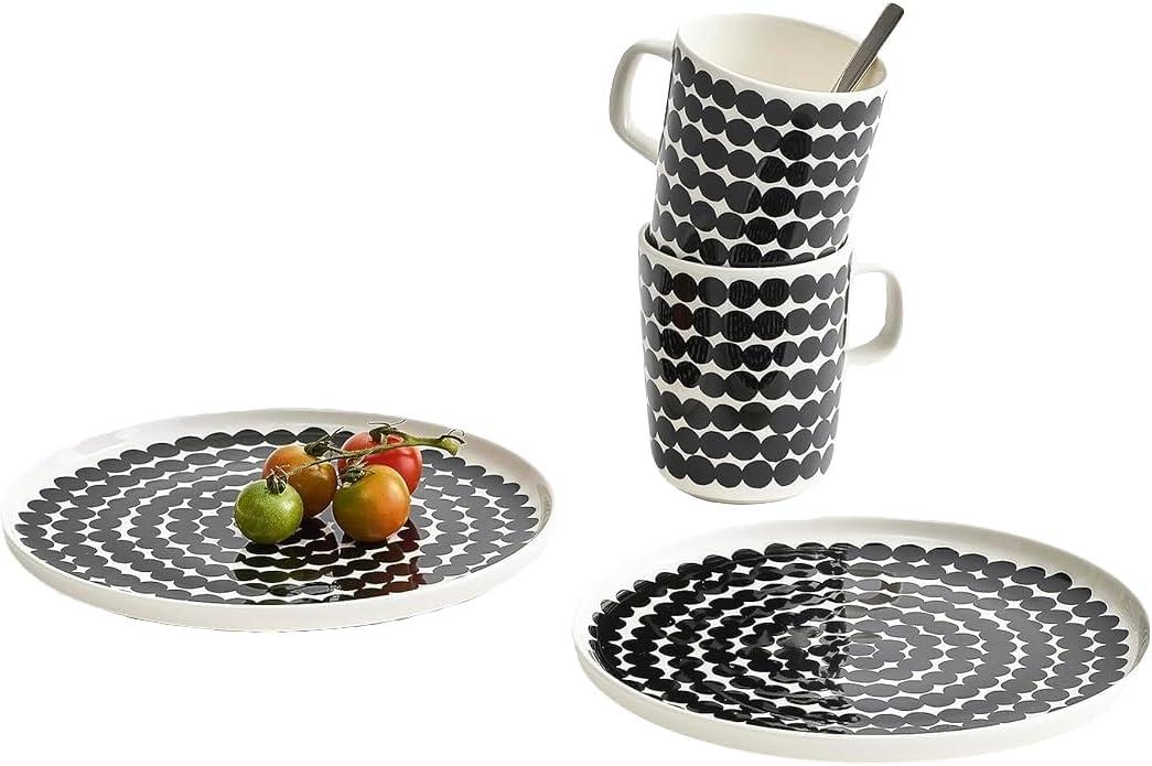 MARIMEKKO Oiva Rsymatto Dish Set – Includes: 2 Plates (8″) & 2 Mugs (8.8oz) – Iconic Black & White Stoneware Set for Refining Your Kitchen Decor(Black Räsymatto)