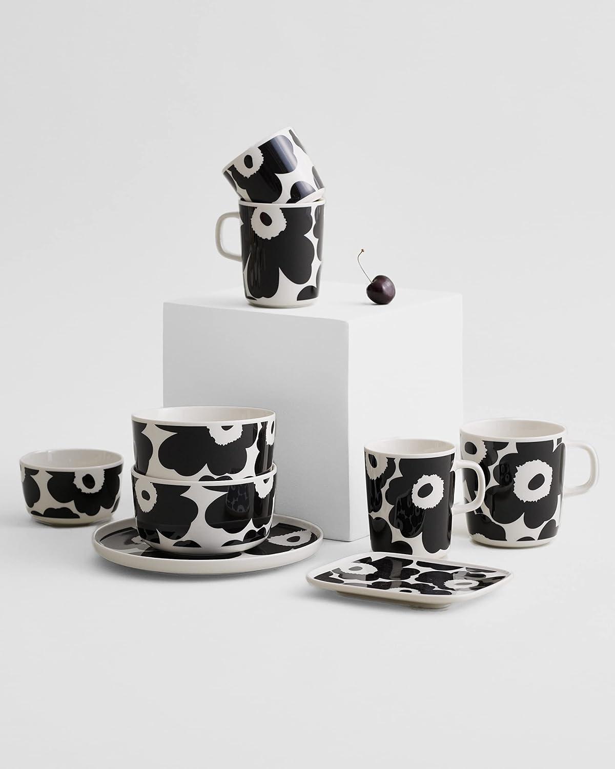 Marimekko in Patterns: Elevate your kitchen routine with the sumptuous touch of Marimekko's black and white dinnerware, featuring quality materials and exquisite patterns; personalize with mix-and-match options for an eclectic kitchen set or opt for a cohesive, timeless collection