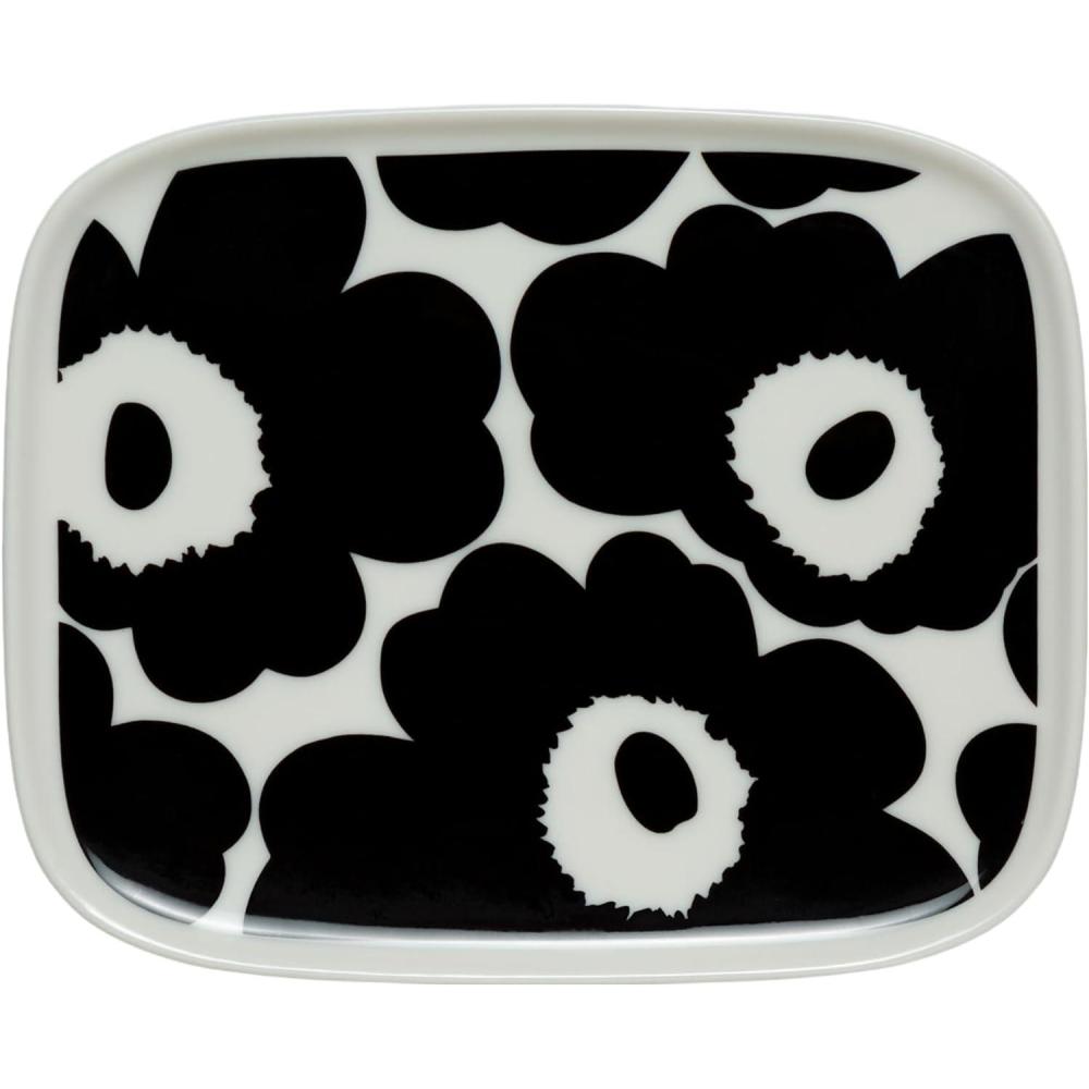MARIMEKKO Oiva Unikko Rectangular Plate (Black) — Refine Your Kitchen Décor with Our Iconic Black & White Stoneware — Serving Plates to Elevate Your Dining Experience (5 in x 6 in)