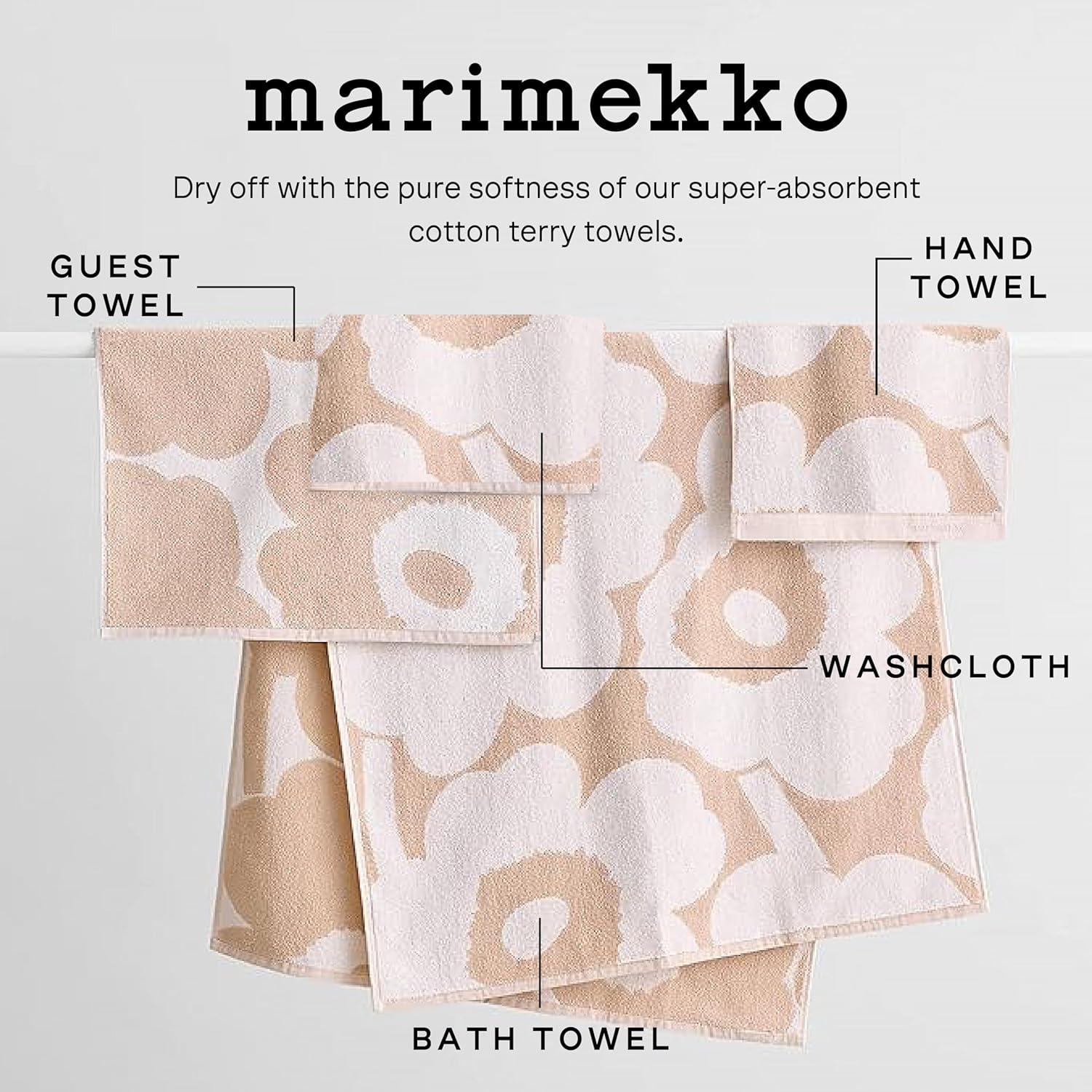 Cozy Marimekko Ritual: Delight your senses and infuse your daily routine with Marimekko's luxury hand towels for bathroom, featuring soft materials and exquisite pattern; personalize with mix-and-match options for an eclectic cotton towel set or opt for a cohesive, timeless collection