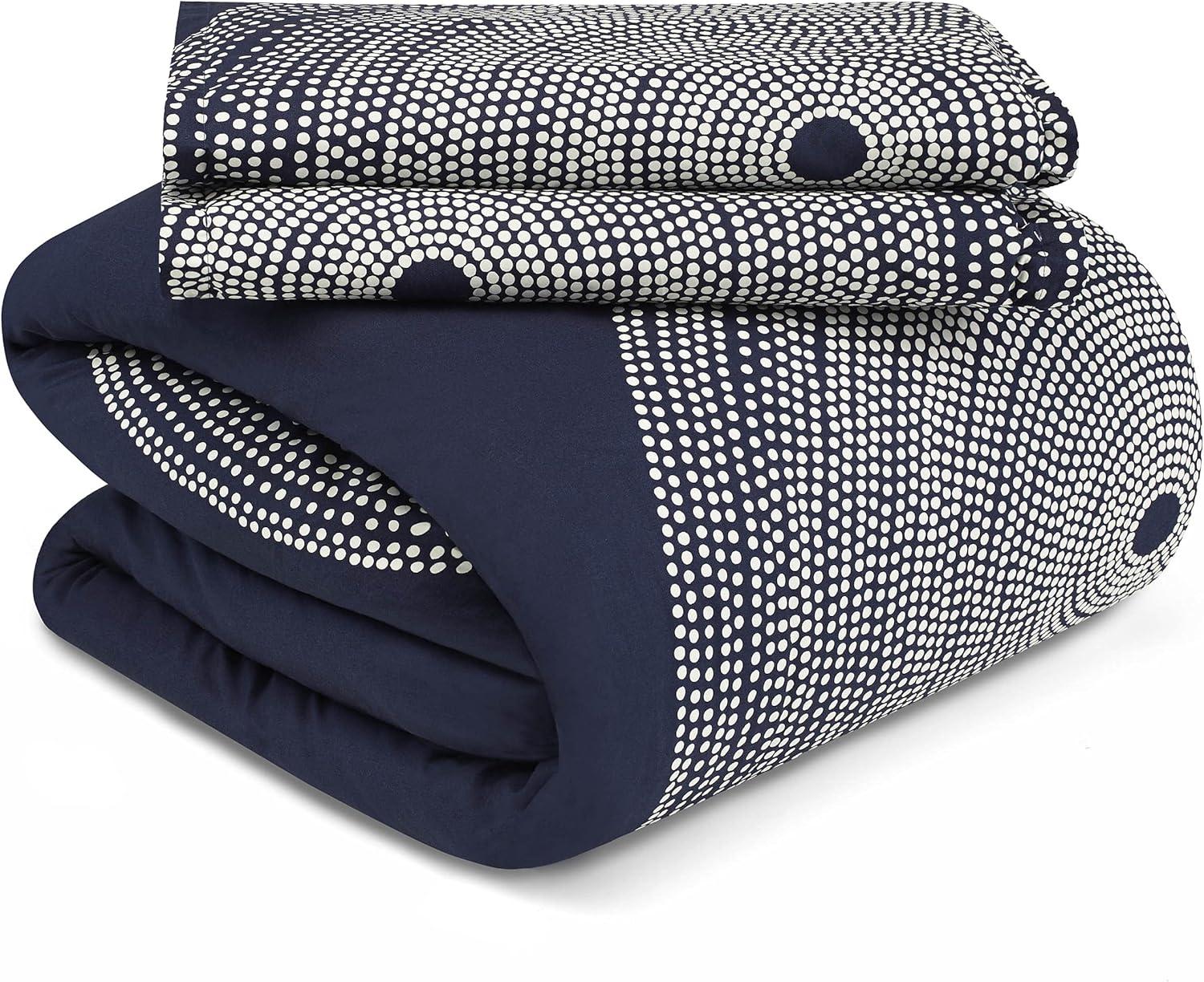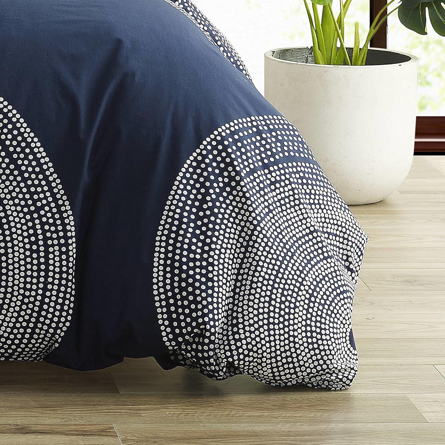 MARIMEKKO Vera Wang – King Duvet Cover Set, Luxury Cotton Sateen Bedding with Matching Shams, All Season Home Decor (Zig Zag White, King)(Fokus Navy)
