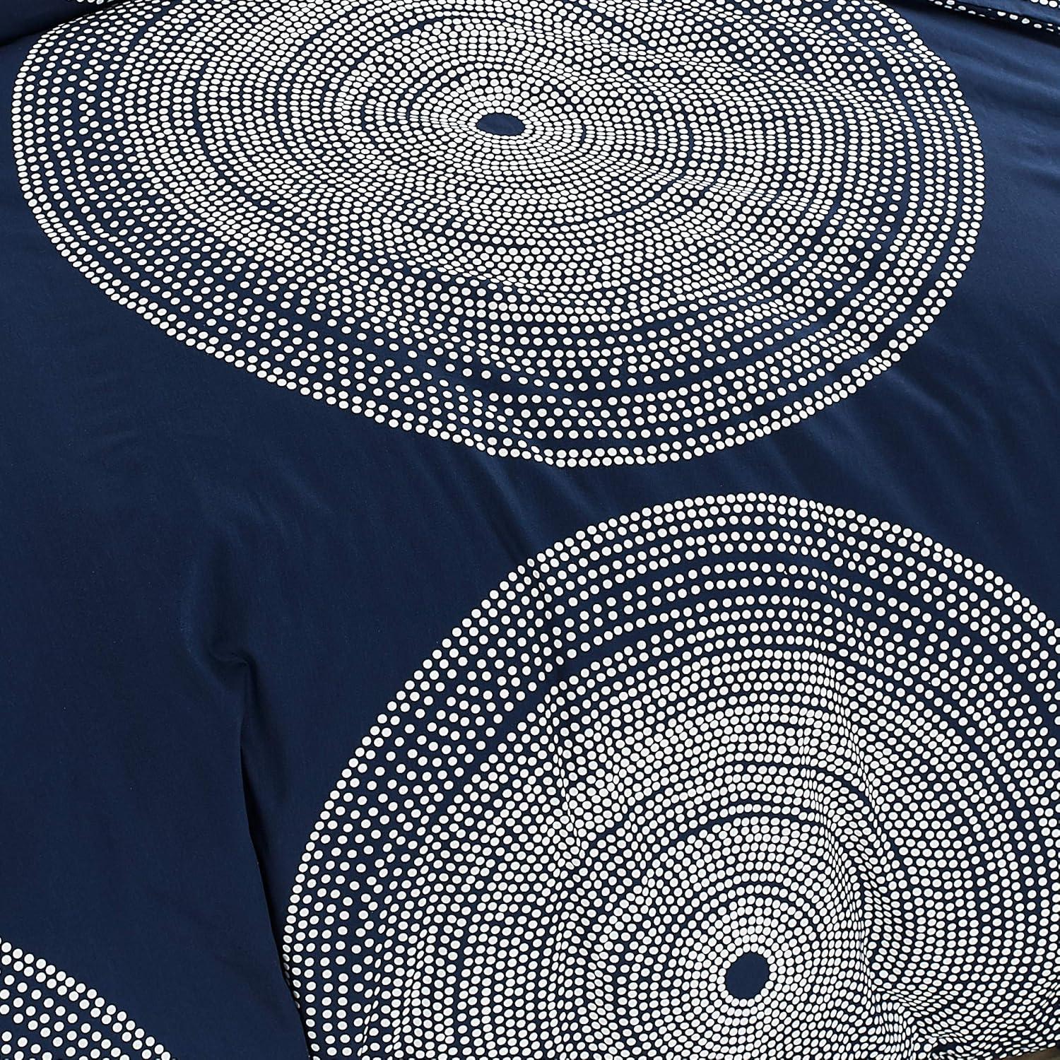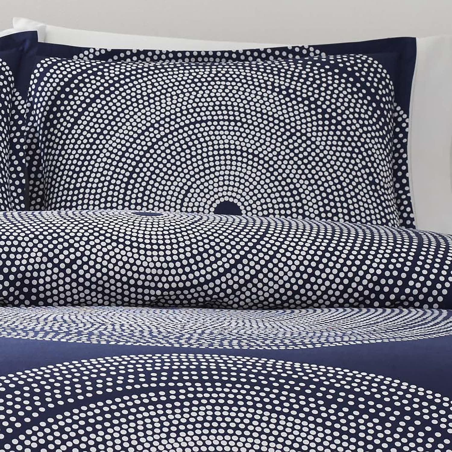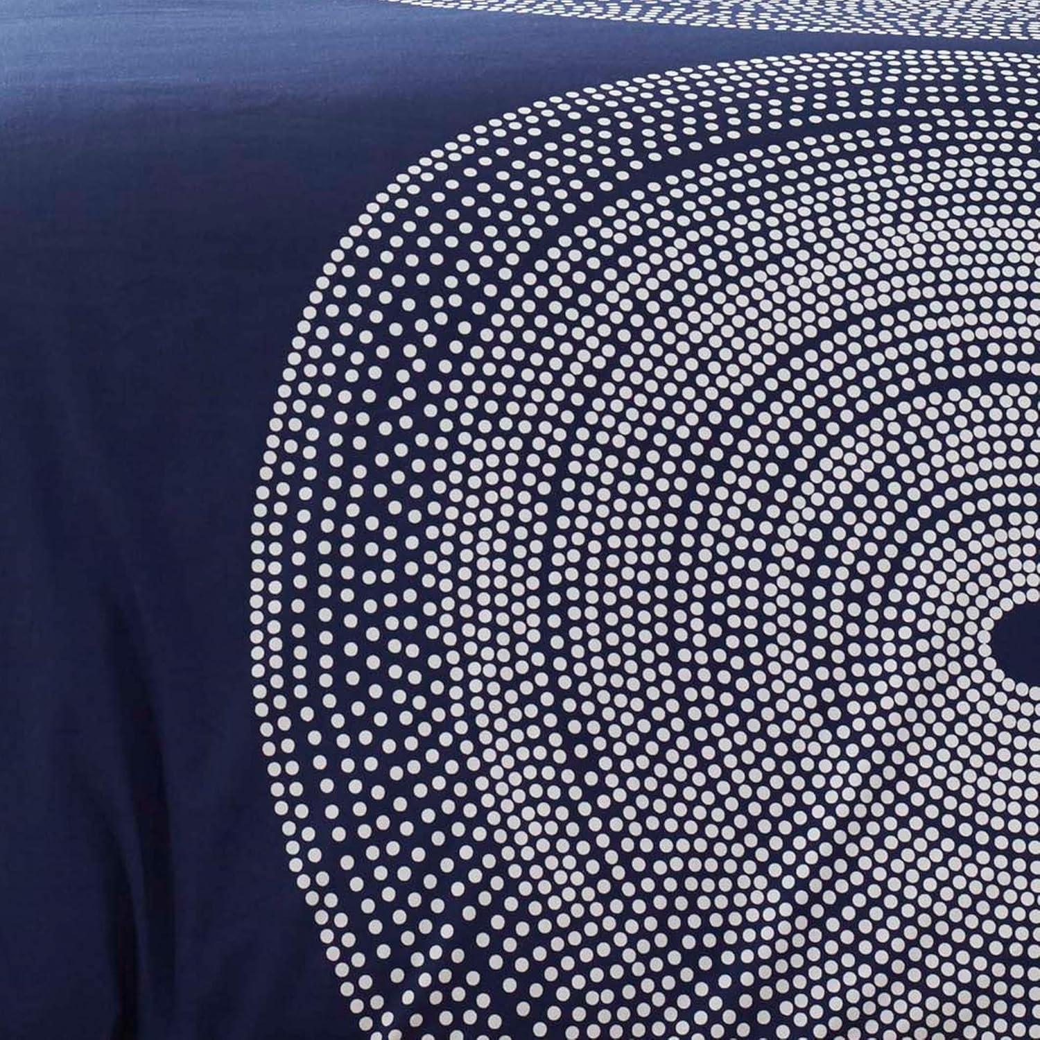 Bring new life to your bedding ensemble with a new duvet cover set from Marimekko. The Fokus Grey duvet cover set features concentric rings of small white dots which join to form larger circles on a medium grey ground, creating a timeless graphic that looks as modern today as it did when it was originally designed in 1999. The engineered placement of the pattern on the duvet cover as well as on the shams forms a pleasing, balanced composition that is bold yet serene in its simplicity. This set is constructed with 100% cotton and the duvet cover features a button closure with additional inner corner ties to secure the duvet in place. Included shams feature an easy overlap closure. Duvet insert is not included. Set is machine washable for easy care.